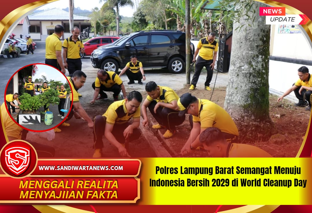 Lampung Barat – sandiwartanews.com – Semangat kepedulian terhadap lingkungan ditunjukkan Polres Lampung Barat dengan menggelar aksi bersih-bersih dalam rangka memperingati World Cleanup Day (WCD) 2025. Kegiatan berlangsung pada Jumat (26/9/2025) pagi di kawasan Mapolres Lampung Barat, dengan mengusung tema nasional “Menuju Indonesia Bersih 2029”.