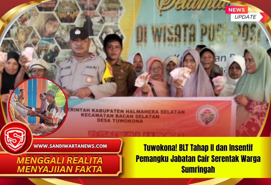 HALMAHERA SELATAN – Sandiwartanews.com – Suasana hangat menyelimuti Aula Desa Tuwokona, Kecamatan Bacan Selatan, Kabupaten Halmahera Selatan, Selasa (30/9/2025). Pemerintah Desa Tokona menyalurkan Bantuan Langsung Tunai (BLT) Dana Desa Tahap II Tahun Anggaran 2025 sekaligus melunasi insentif bagi para pemangku jabatan kelembagaan desa.