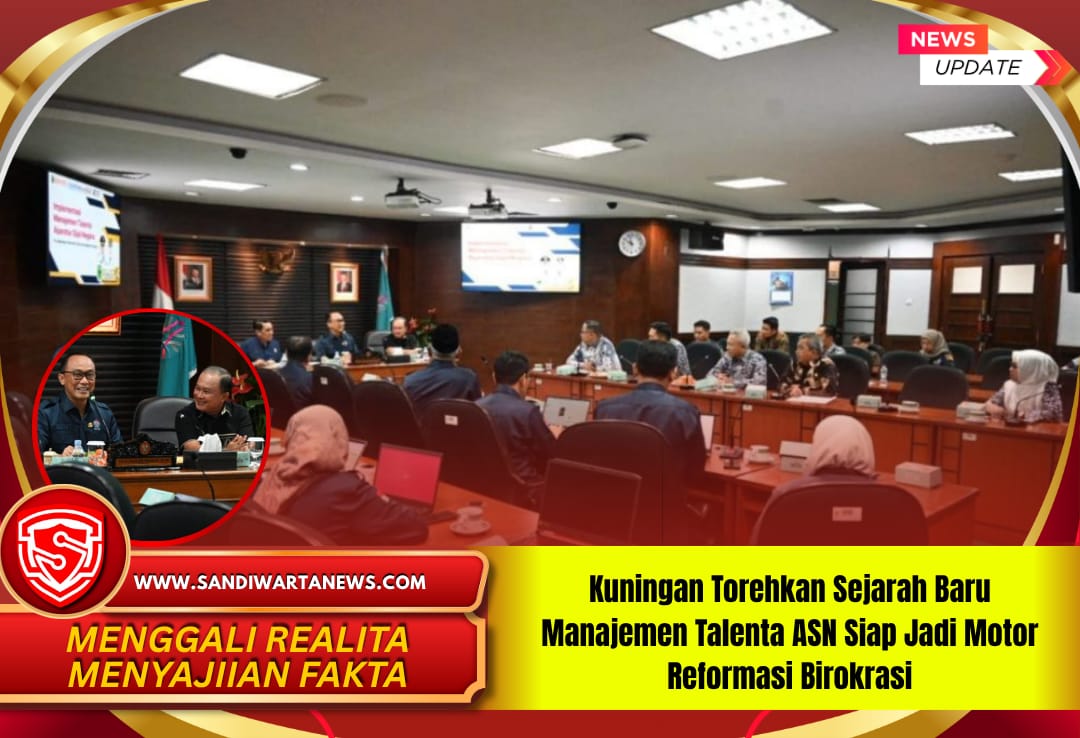 JAKARTA – Sandiwartanews.com – Kabupaten Kuningan mencatat langkah penting dalam upaya mewujudkan birokrasi modern. Bupati Kuningan, Dr. H. Dian Rachmat Yanuar, M.Si., Melalui Ekspose Tahapan Implementasi Manajemen Talenta ASN di kantor Badan Kepegawaian Negara (BKN), Jakarta Timur, Selasa (30/9/2025).