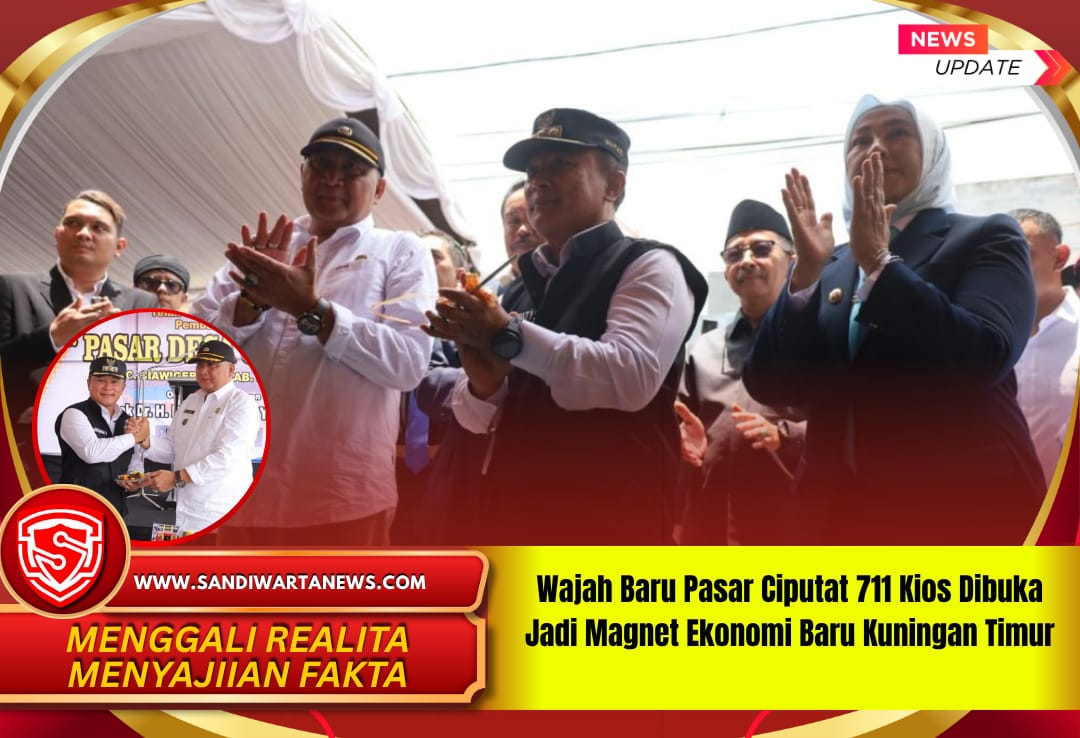 Kuningan – sandiwartanews.com – Suasana Pasar Tradisional Ciputat, Kecamatan Ciawigebang, Rabu (1/10/2025), berubah total. Sebanyak 711 unit kios dan lapak resmi dibuka setelah melalui proses revitalisasi panjang. Peresmian dilakukan langsung oleh Bupati Kuningan, Dr. H. Dian Rachmat Yanuar, M.Si., yang menyebut pasar ini sebagai barometer baru perekonomian Kuningan bagian timur.