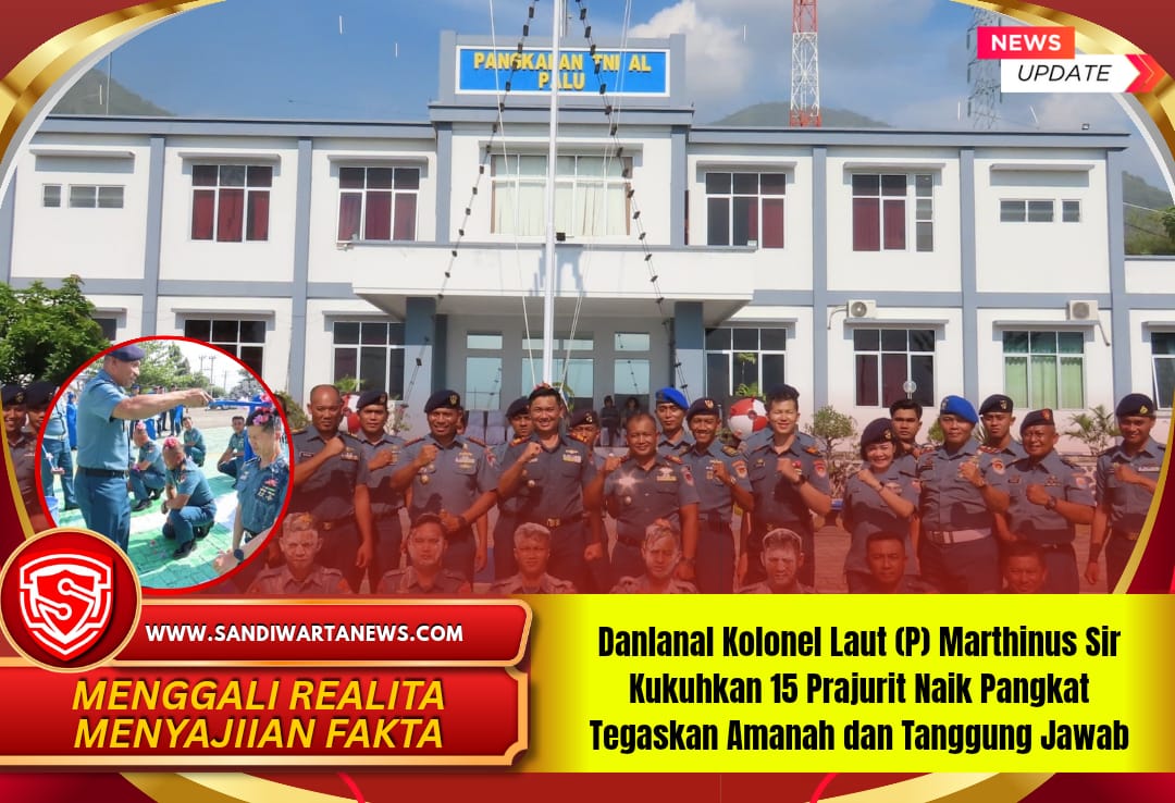 sandiwartanews.com – Palu Sulteng – Di bawah langit cerah Kota Palu, Kamis (2/10/2025), lapangan Apel Markas Komando (Mako) Lanal Palu menjadi saksi penting perjalanan karier 15 prajurit TNI Angkatan Laut. Upacara kenaikan pangkat periode 1 Oktober 2025 dipimpin langsung oleh Komandan Pangkalan TNI AL (Danlanal) Palu, Kolonel Laut (P) Marthinus Sir, dengan khidmat dan penuh makna.