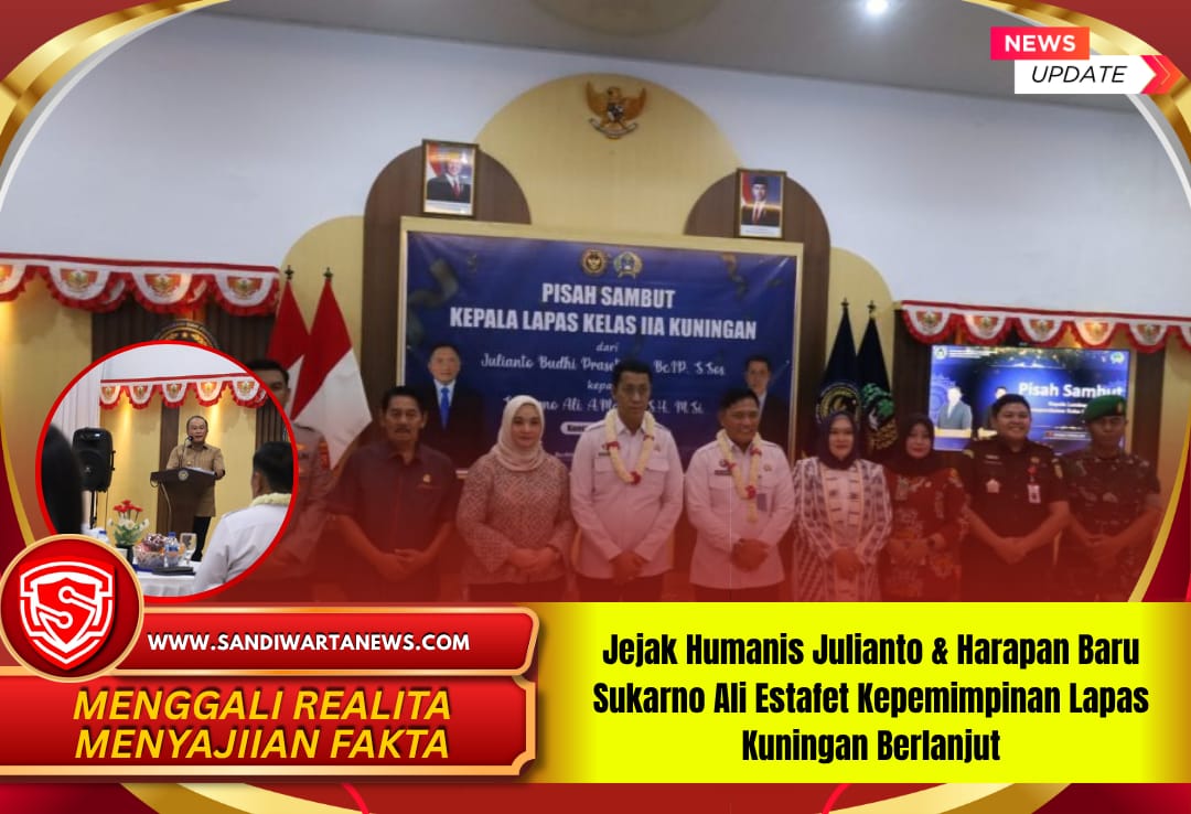 sandiwartanews.com – Kuningan – Suasana penuh keakraban menyelimuti Aula Lapas Kelas IIA Kuningan saat acara pisah sambut Kepala Lembaga Pemasyarakatan, Kamis (2/10/2025). Momen tersebut menandai berakhirnya masa tugas Julianto Budhi Prasetyono, Bc.IP., S.Sos. yang akan melanjutkan pengabdian di Lapas Bengkulu, sekaligus menyambut estafet kepemimpinan baru oleh Sukarno Ali, A.Md.IP., S.H., M.Si.