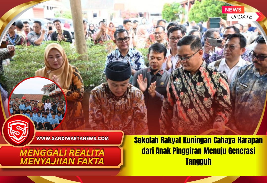 Langkah Nyata Pemerataan Pendidikan Dalam sambutannya, Bupati Kuningan Dian Rachmat Yanuar menjelaskan, Sekolah Rakyat merupakan inisiatif nasional yang digagas oleh Presiden RI Prabowo Subianto untuk memberikan akses pendidikan merata bagi anak-anak dari keluarga prasejahtera di seluruh Indonesia.