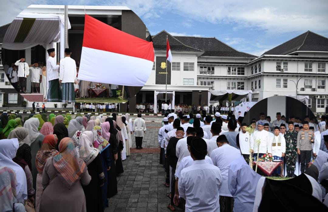 Upacara Hari Santri Nasional di Kuningan berlangsung khidmat dengan rangkaian acara seperti pengibaran Bendera Merah Putih, pembacaan Teks Pancasila, Pembukaan UUD 1945, serta Ikrar Santri.