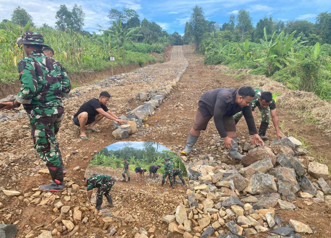 Pandeglang – sandiwartanews.com – Semangat gotong royong di pedalaman Kabupaten Pandeglang kembali menyala. Di bawah terik matahari, anggota Satgas TNI Manunggal Membangun Desa (TMMD) ke-126 Kodim 0601/Pandeglang terus bekerja tanpa kenal lelah, bahu-membahu bersama warga menata batu demi batu untuk memperkeras badan jalan desa.