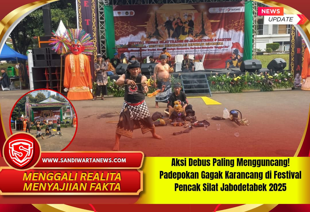 Jakarta — sandiwartanews.com – 15 November 2025 – Panggung Festival Pencak Silat Tradisi se-Jabodetabek 2025 berubah menjadi lautan sorak ketika atraksi debus dari Padepokan Gagak Karancang mengguncang Museum Satria Mandala, Jakarta Selatan. Dalam rangkaian acara memperebutkan Piala Menteri Kebudayaan Republik Indonesia 2025, para pendekar menampilkan aksi ekstrem yang memadukan keberanian, teknik, dan spiritualitas khas seni tradisional Nusantara.