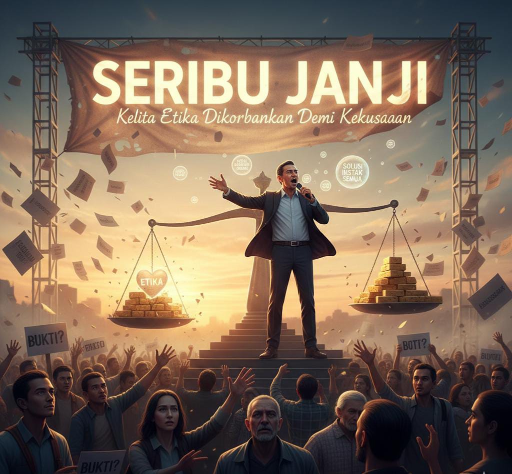 Rakyat tidak membutuhkan pemimpin yang pandai berjanji, tetapi pemimpin yang berani bertanggung jawab. Jika sejak awal janji sudah menjadi alat manipulasi, maka jangan heran jika setelah kekuasaan diraih, kepercayaan publik runtuh. Demokrasi yang bermartabat hanya bisa ditegakkan oleh kejujuran, bukan oleh seribu janji yang menguap ditelan waktu.
