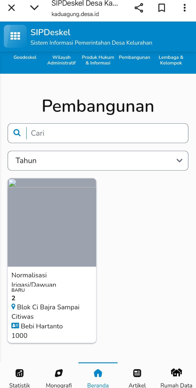 Berdasarkan penelusuran awak media pada laman resmi https://kaduagung.desa.id/pages/menu/pembangunan.aspx ditemukan data kegiatan pembangunan tahun anggaran 2025 dengan judul “Normalisasi Irigasi/Dawuan”. Namun, alih-alih memberikan kejelasan, informasi yang ditampilkan justru memunculkan sejumlah tanda tanya di tengah masyarakat.