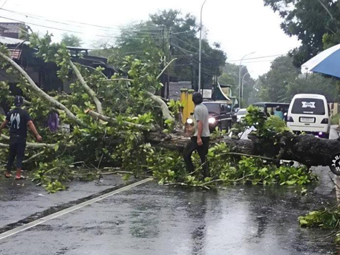 Sandiwartanews.com – Sumenep – Hujan deras yang disertai angin kencang melanda wilayah Kota Sumenep, Madura, Jawa Timur, Selasa (13/1/2026) . Cuaca ekstrem tersebut menyebabkan sebuah pohon berukuran besar tumbang dan menutup total Jalan Raya Gapura, tepatnya di sekitar area Pemakaman Bejeng, Desa Parsanga.